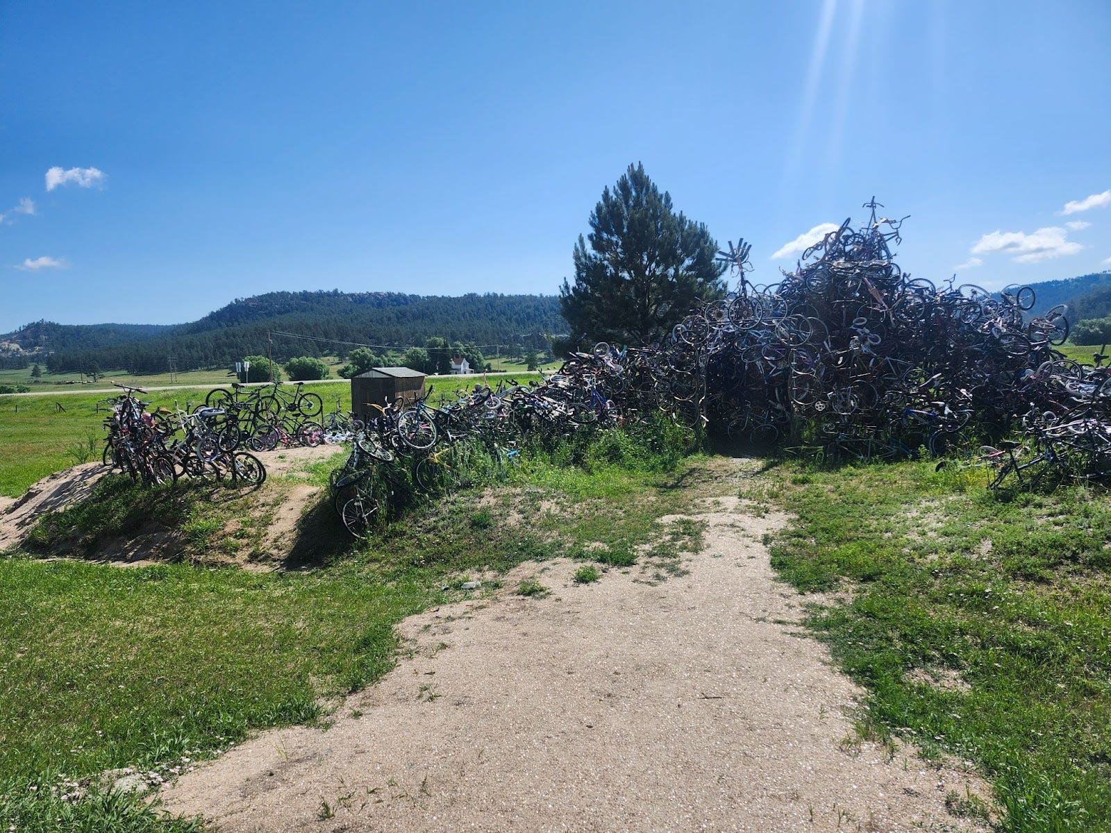 We took charging breaks at a campground, and then in Pringle, SD. Pringle looked like a quaint little place. They had their own bicycle monument, or something like it. It had a gate and tunnels built in, and looked a little like a lawsuit waiting to happen. But it was still a sight to see.
